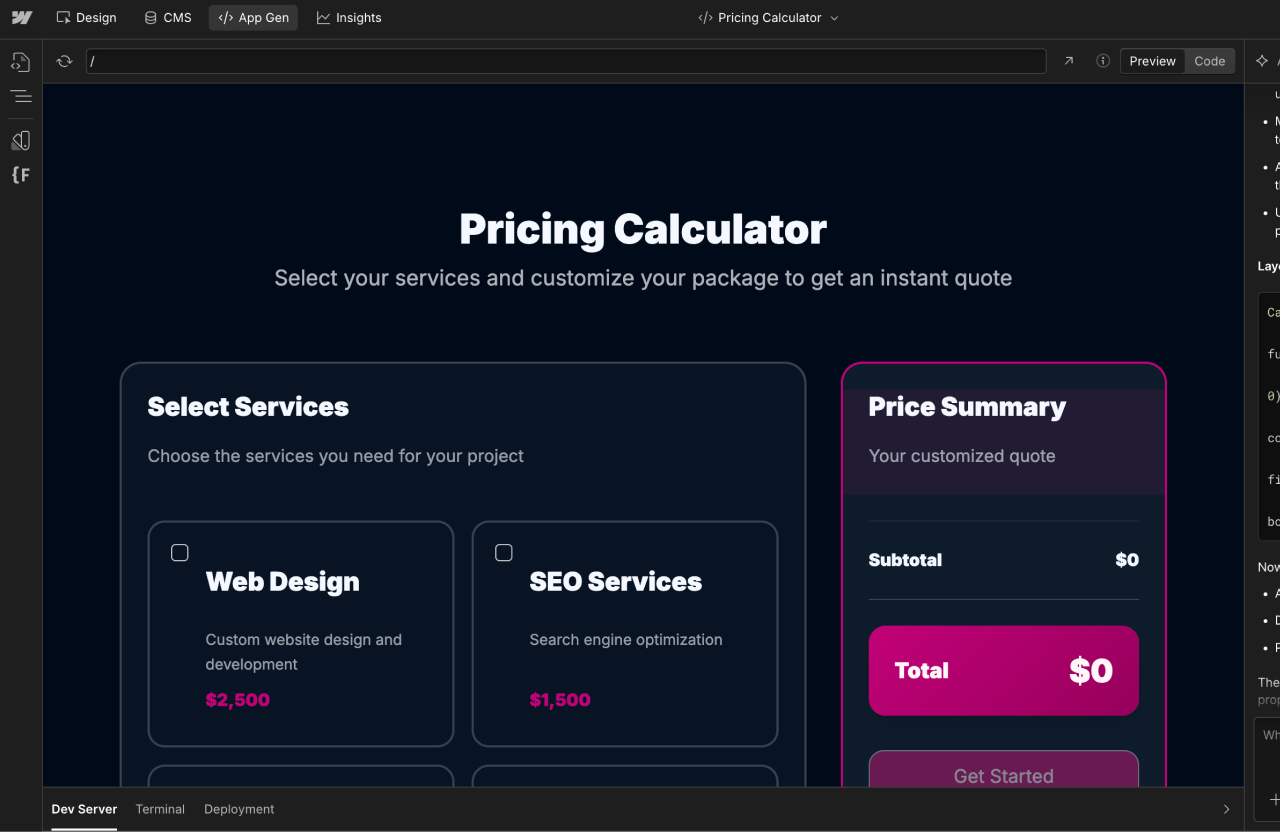 - Production Ready: The output deploys instantly to the existing Webflow Cloud environment.